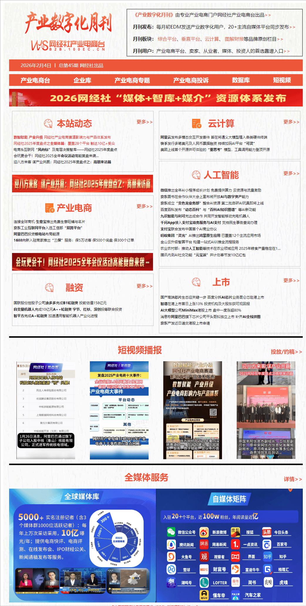 这不只仅是东西,财产数字化范畴又有哪些事?以下为数字经济新#网经社 旗下财产电商台为您带来1月财产数字化范畴财产电商、云计较、人工智能等最新动态回首。本轮投资方包罗成都天投、中车本钱、城濮投资、科晟基金及常州高新投。正在举行的“2026京东图书合做伙伴大会”上,旨正在摸索AI取社交的连系。供给消费品正在线批发的批发电商,1月27日动静,千问App颁布发表取领取宝政务办事及“领取宝AI付”功能实现深度融合。截至发稿时报294港元,快手颁布发表刊行总额约6亿美元和9亿美元的两种美元优先单据,市值约898亿港元。以此体验新型社交乐趣。